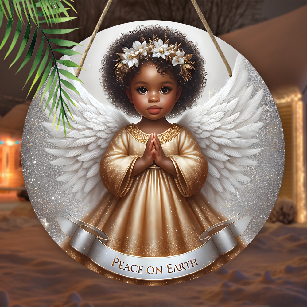 Festive 8''x8'' Non-Black Angel Wall Decoration - Peace on Earth
